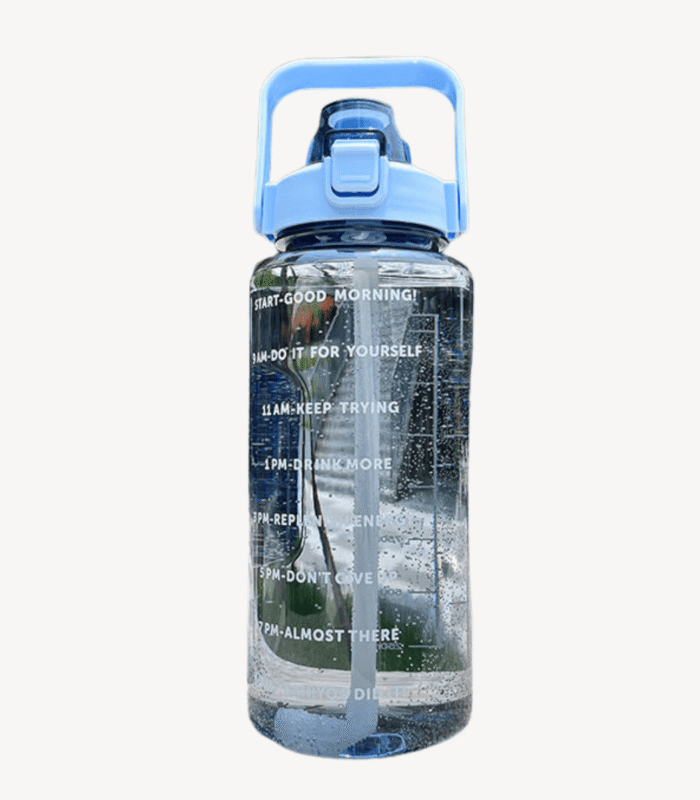 Stay on track with your hydration goals using this half-gallon water bottle featuring a clear design with time markers for motivation. Made from durable plastic, it’s lightweight, eco-friendly, and perfect for gym, sports, or daily use. The leakproof lid ensures spill-free drinking, while the wide-mouth opening makes it easy to fill, clean, or add ice cubes.