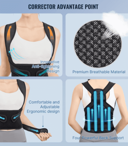 The Posture Corrector is designed to provide effective support for maintaining a healthy and upright posture. Made from durable polyester fiber, it is highly elastic, breathable, adjustable, and comfortable for long-term wear.event posture-related myopia, and provide back support, making it suitable for both adults and students. Its lightweight and comfortable design allows it to be worn during home use, office work, study, travel, or daily activities, encouraging proper posture and reducing discomfort caused by poor alignment.