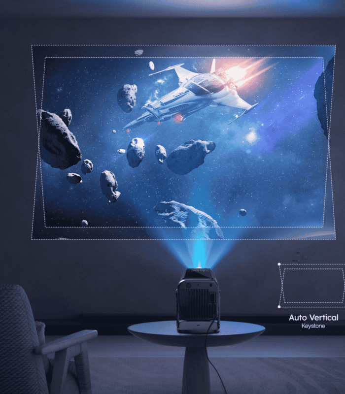 Equipped with dual Wi-Fi (2.4G/5G) and Bluetooth connectivity, this projector ensures seamless pairing with smartphones, laptops, or speakers. Its built-in speakers deliver clear sound, while the auto keystone correction helps you adjust images for the perfect view. Ideal for home theater setups, small gatherings, or on-the-go entertainment.