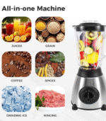 The HB-T1505 High-Speed Multi-Functional Smoothie Blender is a powerful and versatile kitchen essential, designed for both blending and grinding. With a 1.5L glass mixing jar and a dedicated grinding cup, it can easily prepare fresh smoothies, shakes, juices, sauces, and also grind coffee beans, nuts, or spices with precision.