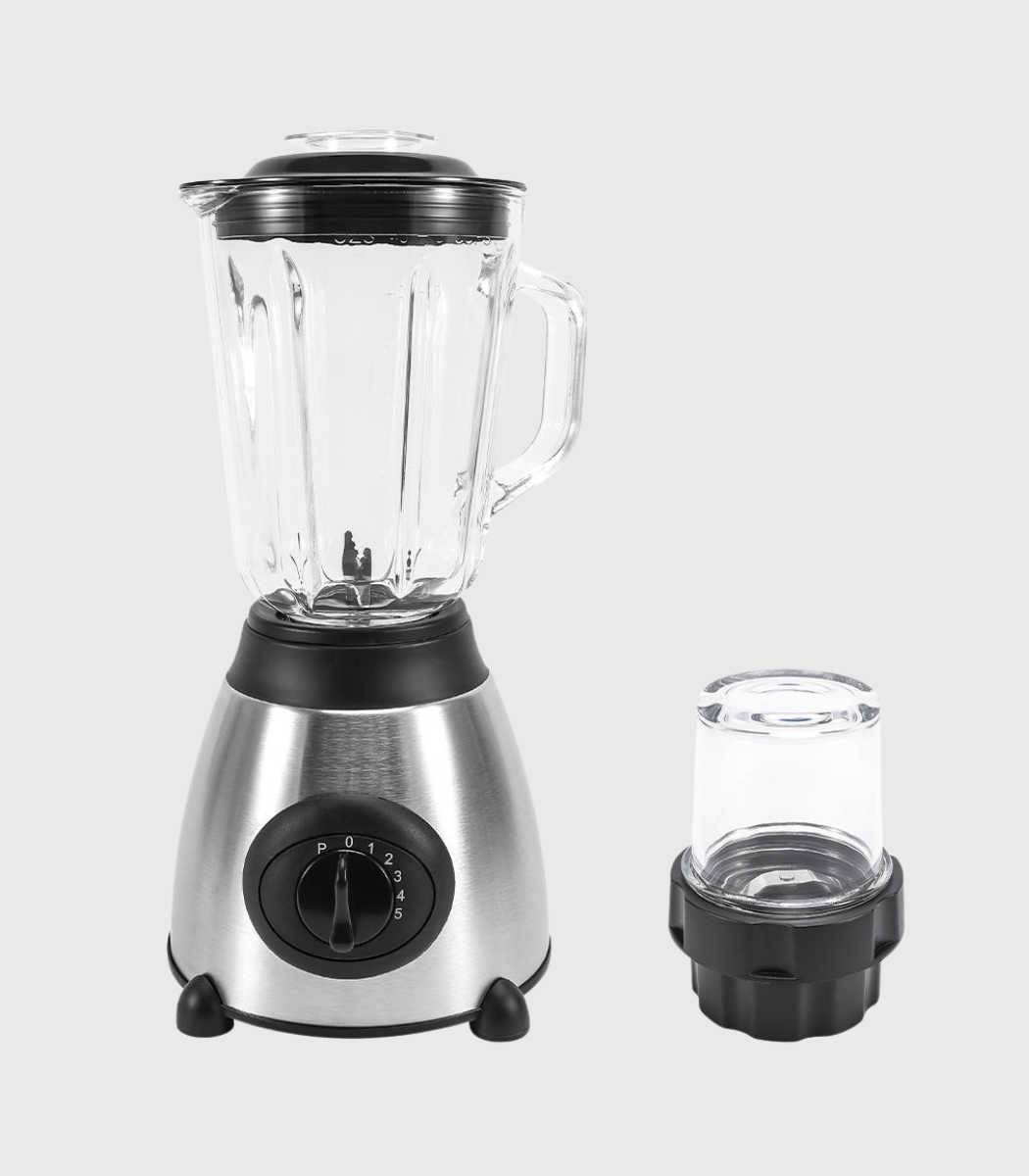 The HB-T1505 High-Speed Multi-Functional Smoothie Blender is a powerful and versatile kitchen essential, designed for both blending and grinding. With a 1.5L glass mixing jar and a dedicated grinding cup, it can easily prepare fresh smoothies, shakes, juices, sauces, and also grind coffee beans, nuts, or spices with precision.