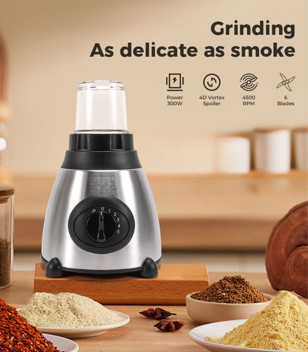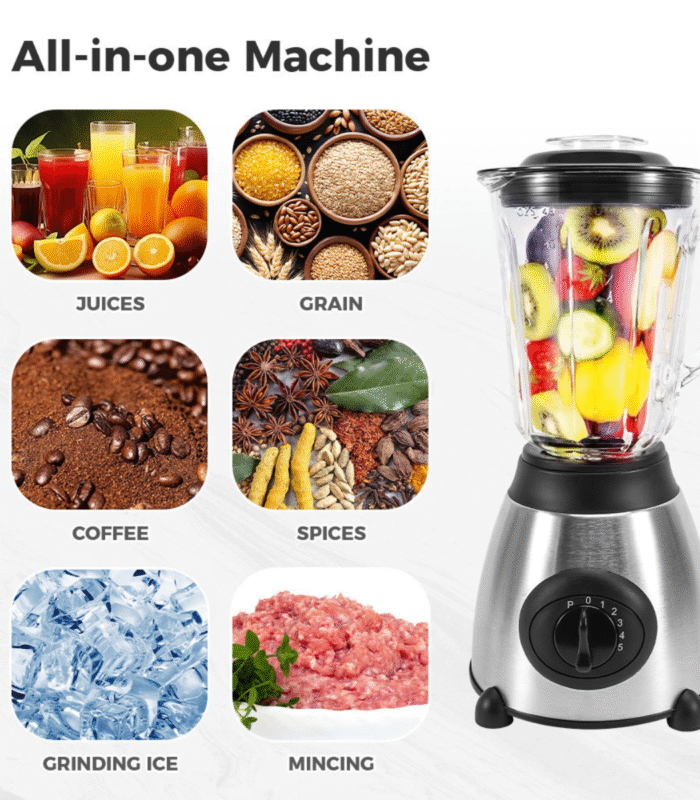 Powered by a 300W motor, this electric blender offers five speed modes and a pulse function, allowing you to achieve the perfect texture for any recipe. The 6-piece stainless steel blades ensure fast, efficient, and consistent blending, while the durable glass jar guarantees safety and long-lasting use.