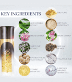 Gold Flakes (1/10000 mm thin): Adds luminosity, lightweight on skin