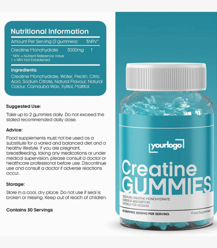 - Packaging: 60 gummies per bottle (customizable)