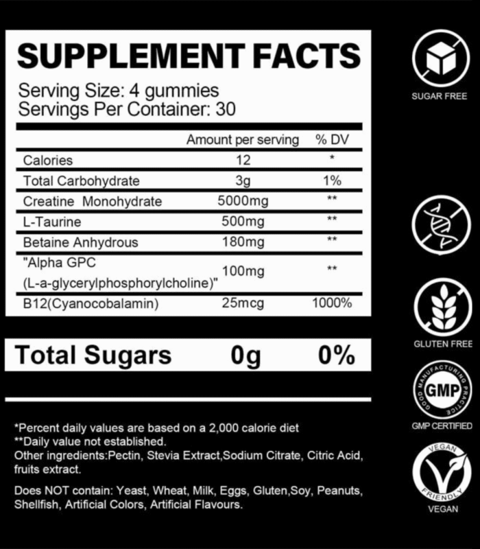 Specially formulated for fitness enthusiasts and athletes, these gummies provide essential nutrients to support healthy weight gain, muscle recovery, and energy boost. Convenient and tasty, they are an excellent alternative to traditional powders or capsules. With 120 gummies per bottle, this supplement ensures an easy and effective way to meet daily nutritional needs.